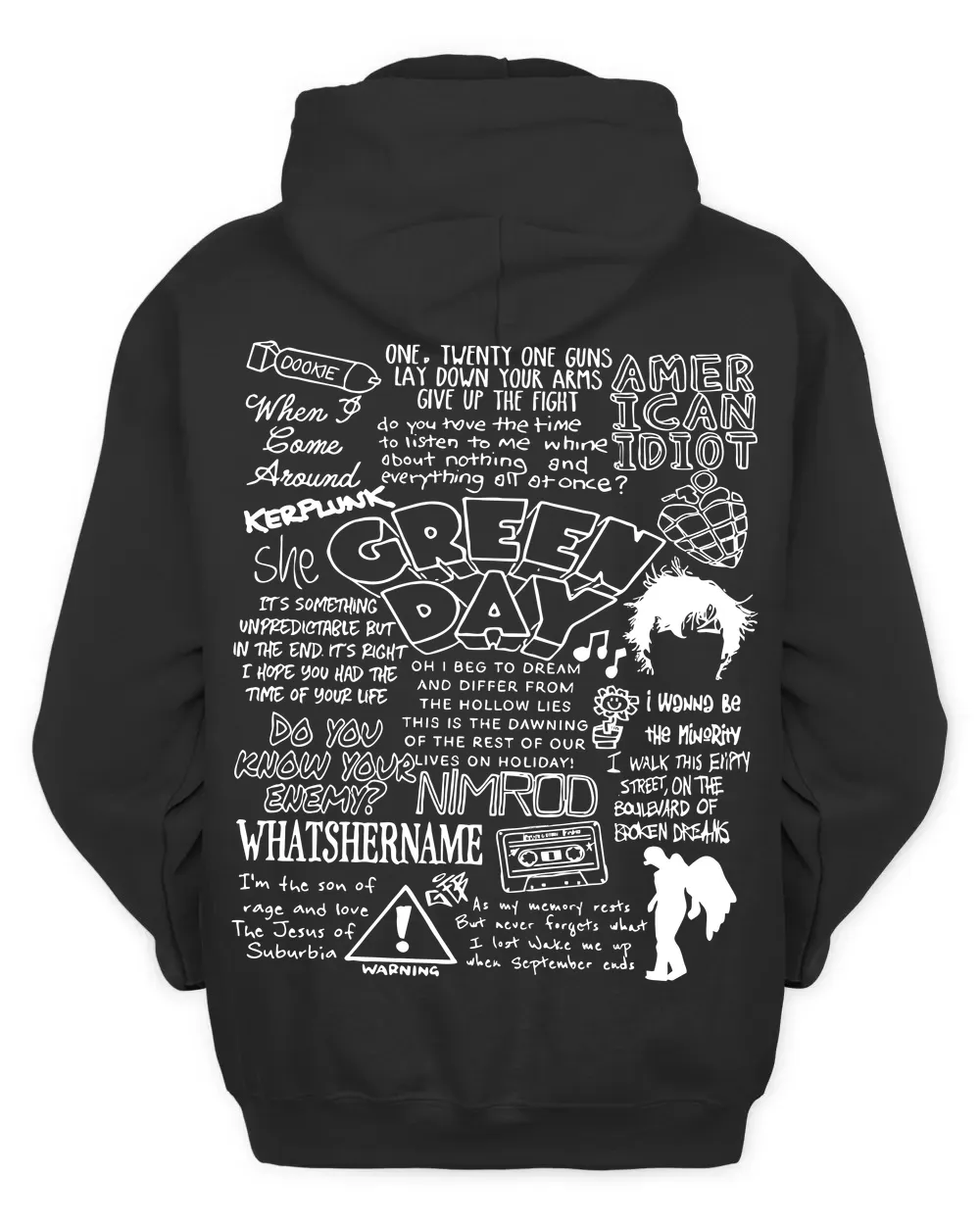 Hoodie Green Day Doodle Art , Green Day , Vintage Green Day Lyric Album Song Music Band