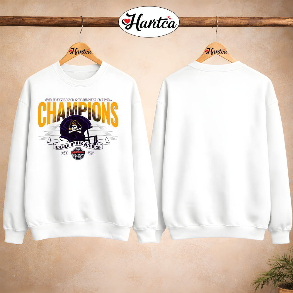 Original Ecu Football Ncaa Military Bowl Champions 2025 Helmet And Logo T-Shirt