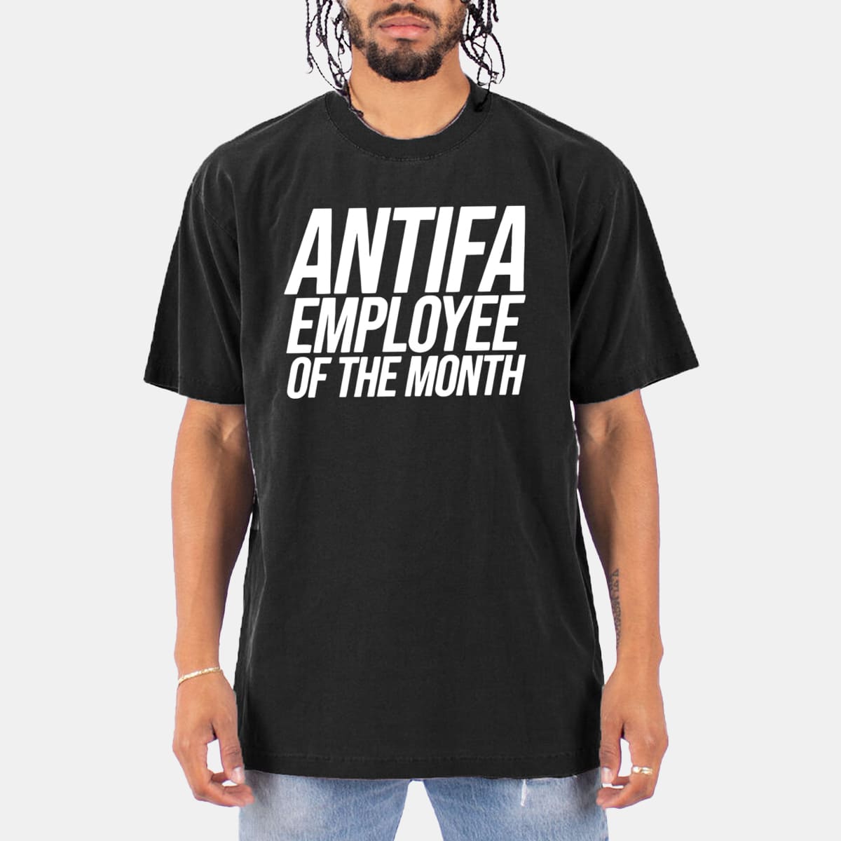 Antifa Employee Of The Month Political Satire Graphic TShirt Trendy Gift for Activists