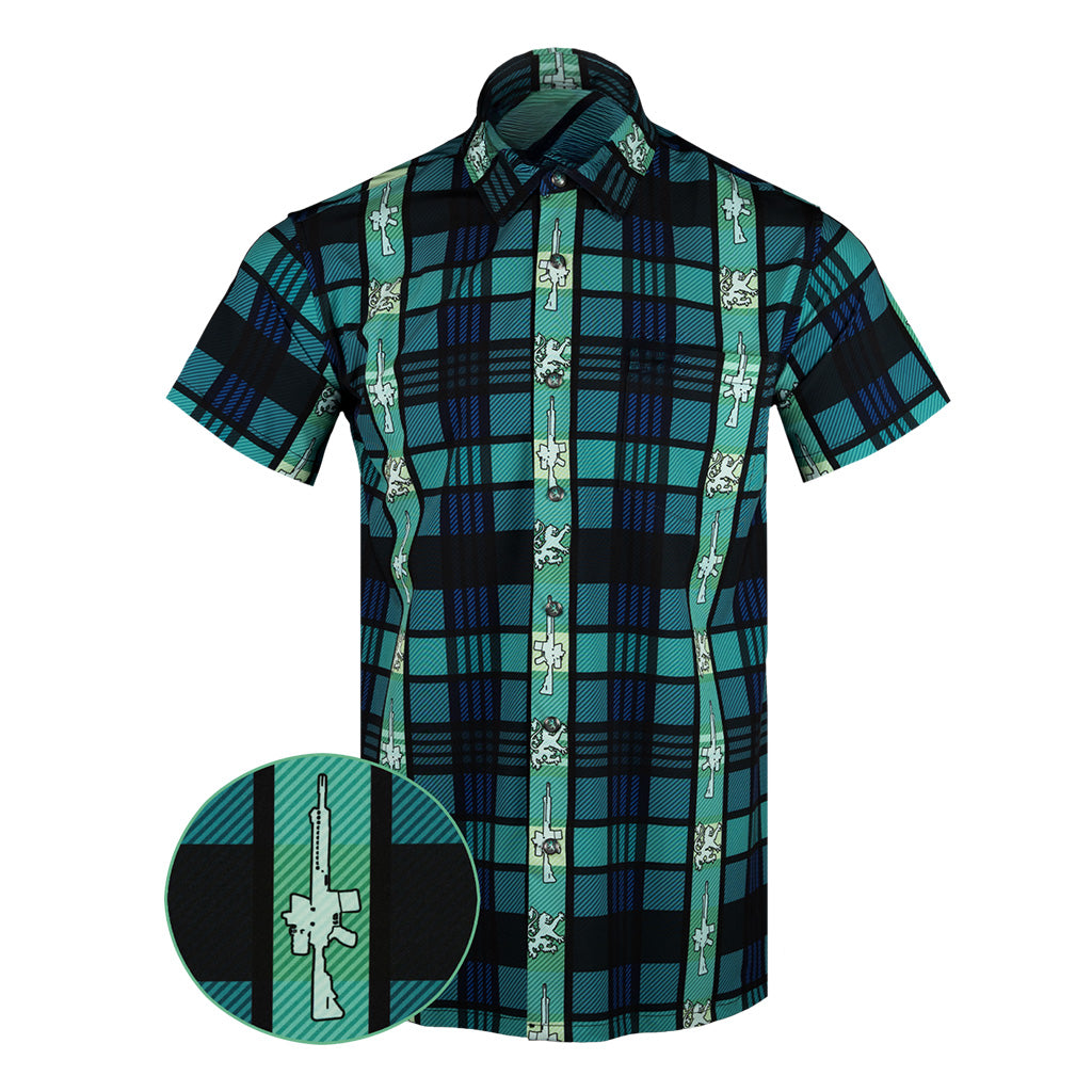 Deep Blue Button Down Shirt Pearl Snaps Apparel Gun Print Hawaiian Shirt Christmas Gifts For Dad.