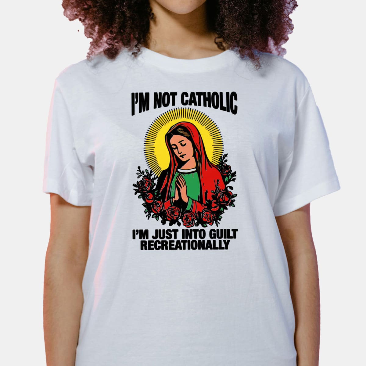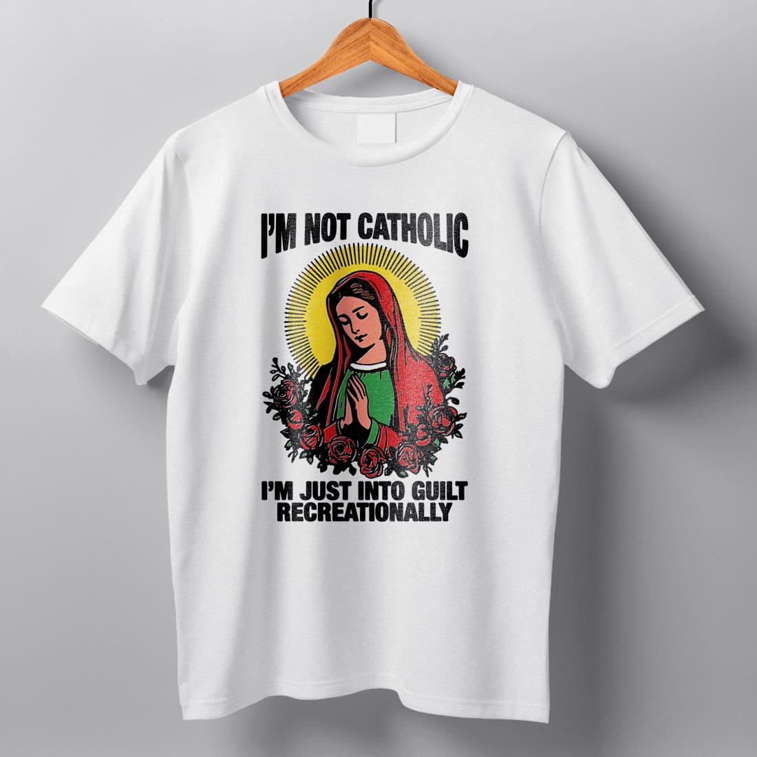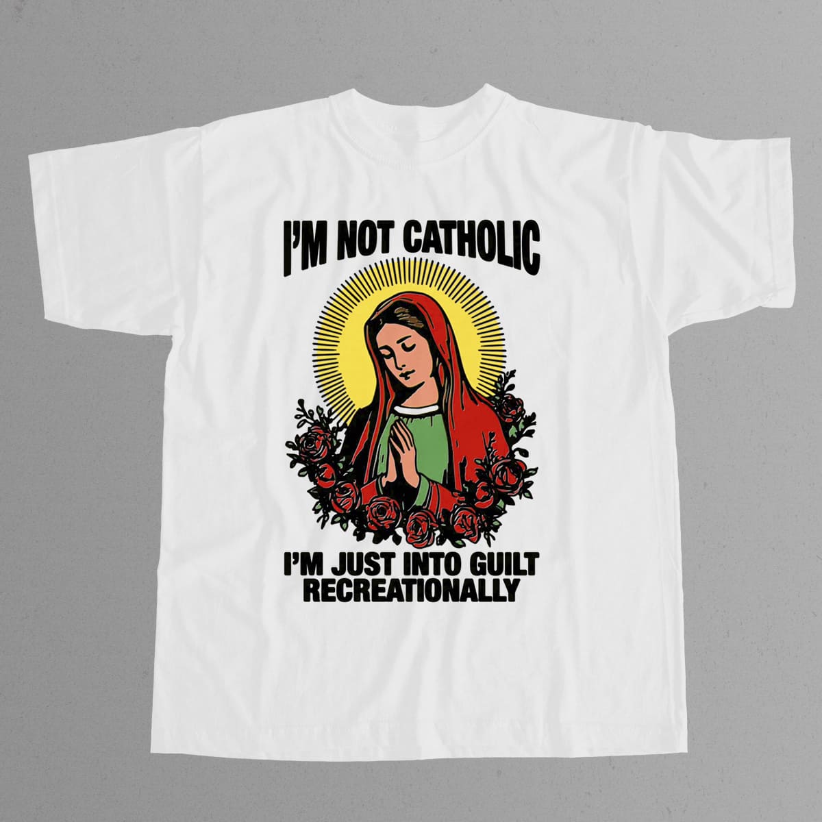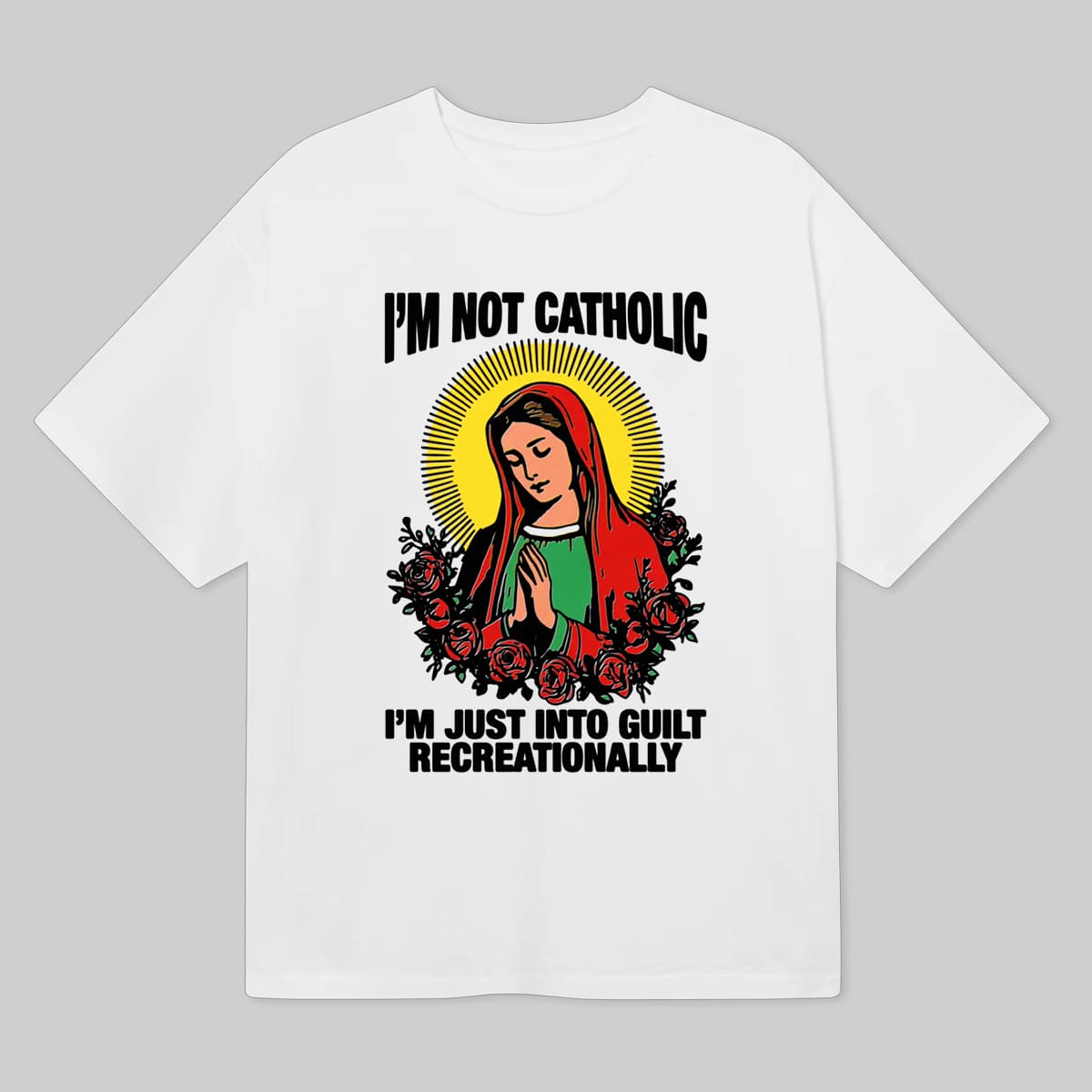 Im Not Catholic Im Just Into Guilt Recreationally Funny Religious Humor Graphic Tee Gift for Adults