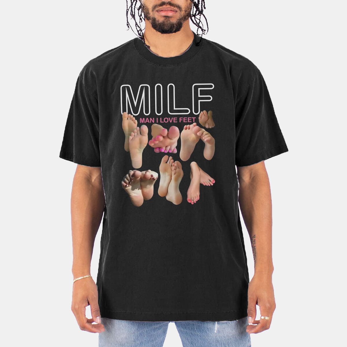MILF Man I Love Feet Funny Naughty Meme Graphic Tee Viral Humor Trend Shirt Gift for Adults