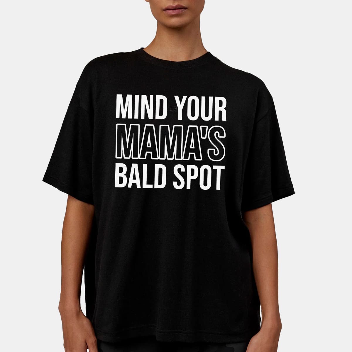 Mind Your Mamas Bald Spot Funny Roast Meme Graphic Tee Sassy Quote Shirt Gift for Humor Lovers