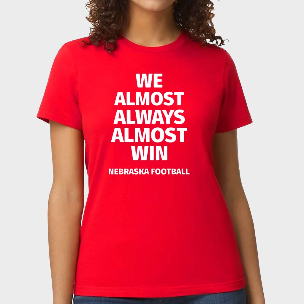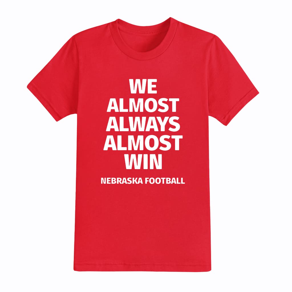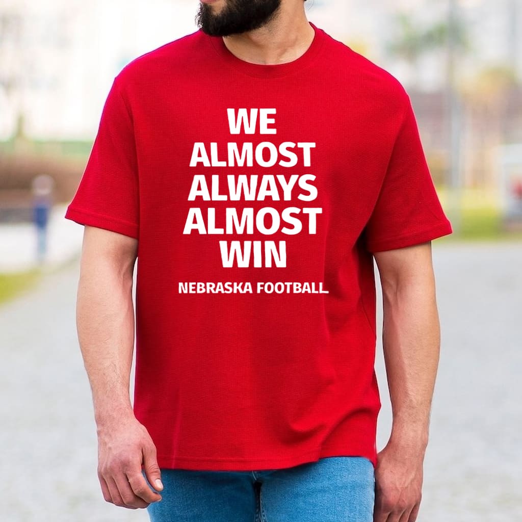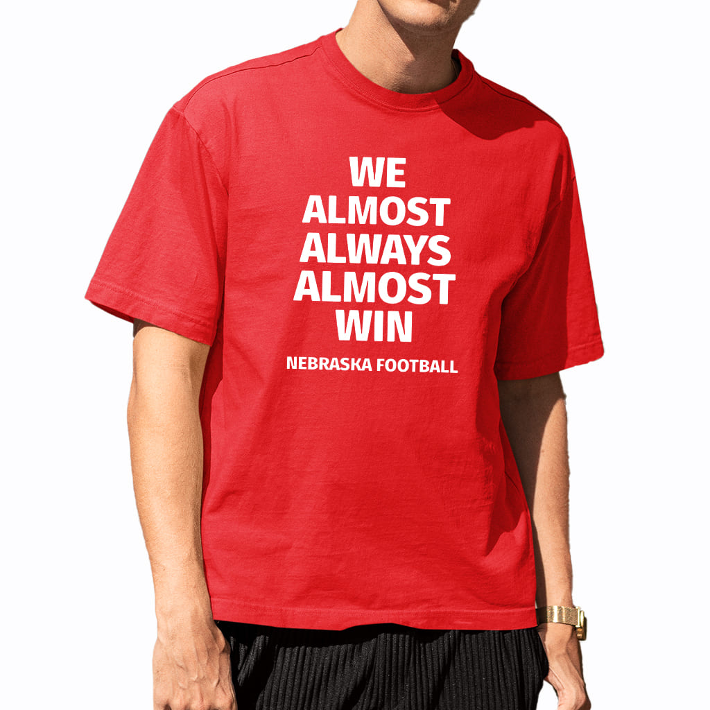 Nebraska Cornhuskers We Almost Always Almost Win Funny College Football Graphic Tee Game Day Shirt Gift for Fans