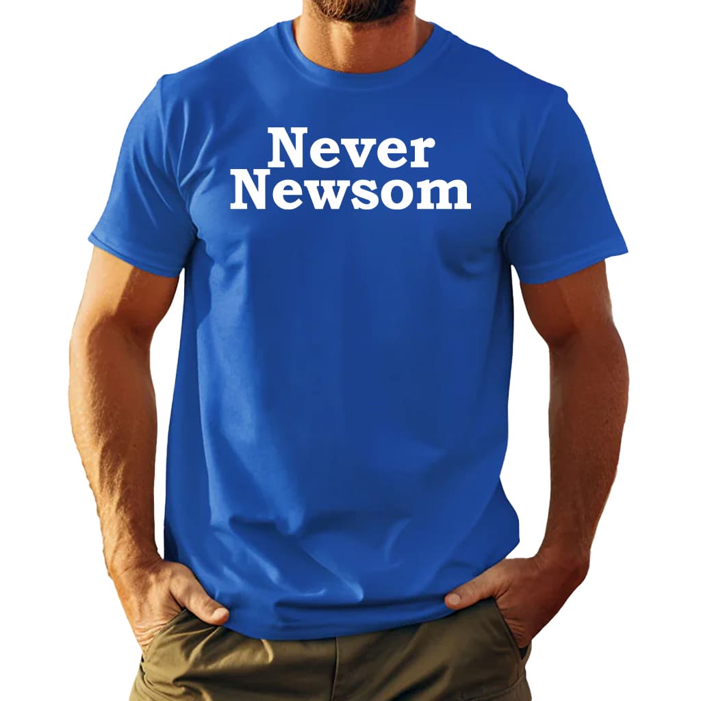 Never Newsom Political Humor Graphic Tee AntiGovernment Satire Shirt Gift for Californians