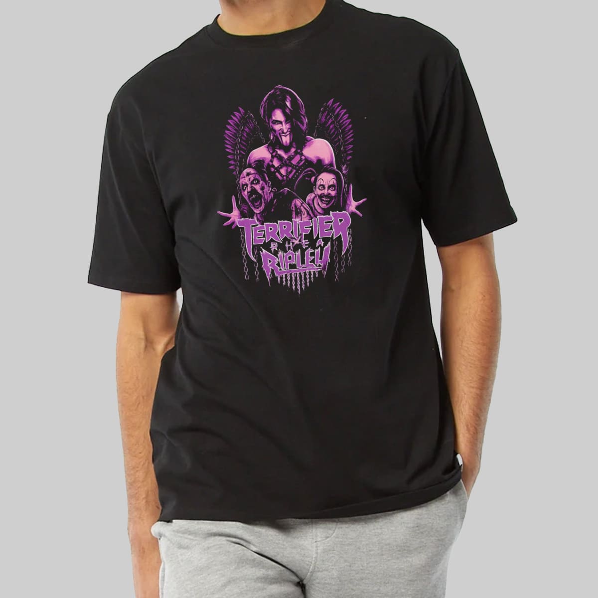 Rhea Ripley x Terrifier Halloween Horror Crossover Graphic Tee Wrestling Scary Movie Shirt Gift for Fans