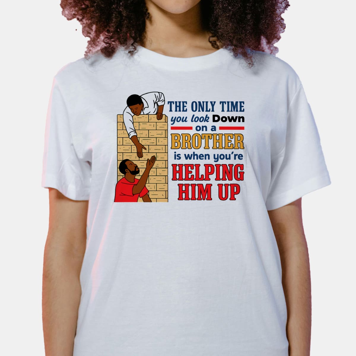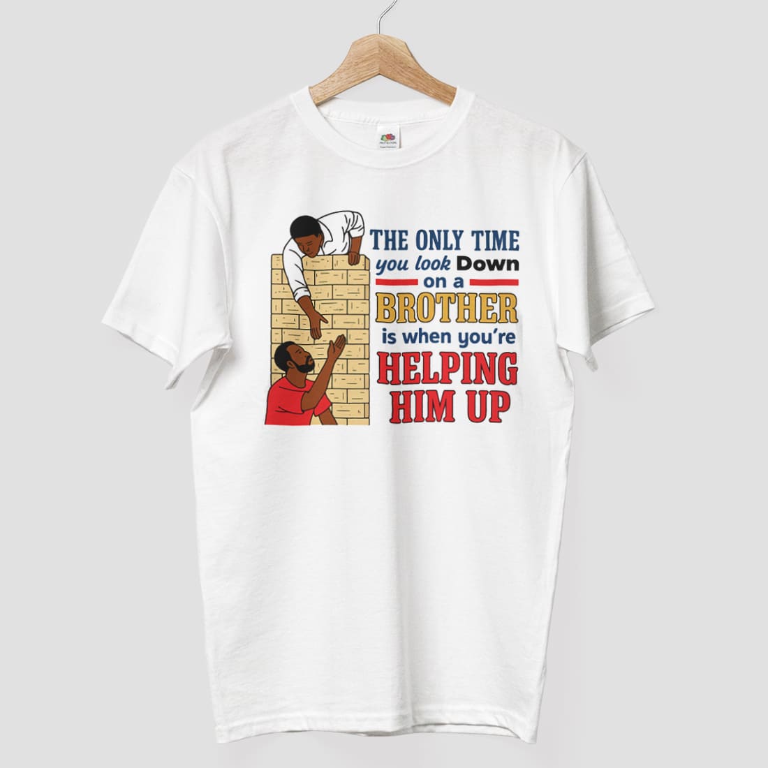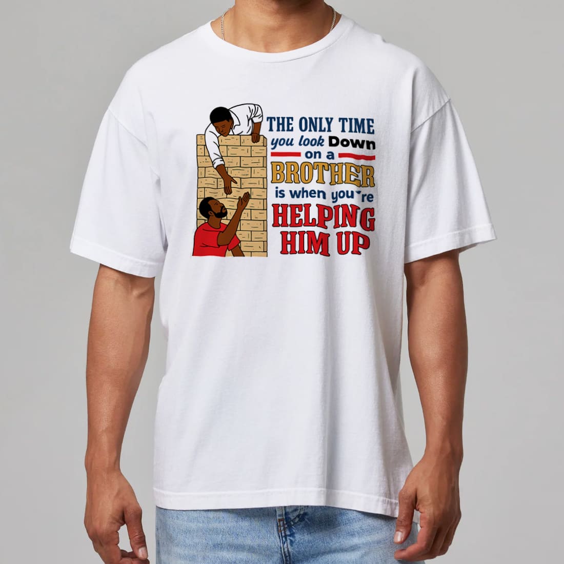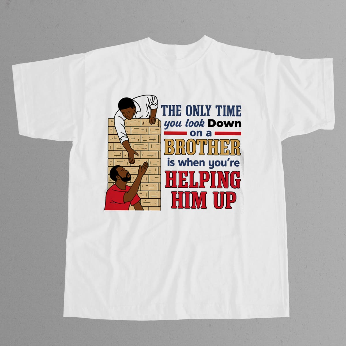 The Only Time You Look Down On A Brother Is When Youre Helping Him Up Motivational Graphic Tee Brotherhood Quote Shirt Gift for Friends
